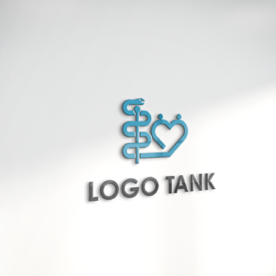 アスクレピオスの杖のロゴ 青 / 単色 / ハート / シンプル / 落ち着き / 医療 / クリニック / ケア / 団体 / 施設 /,ロゴタンク,ロゴ,ロゴマーク,作成,制作