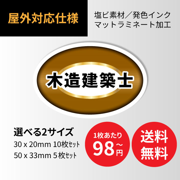 [資格ステッカー 木造建築士] 塩ビ+表面マットラミ加工 1シート | ヘルメット・ 工具など