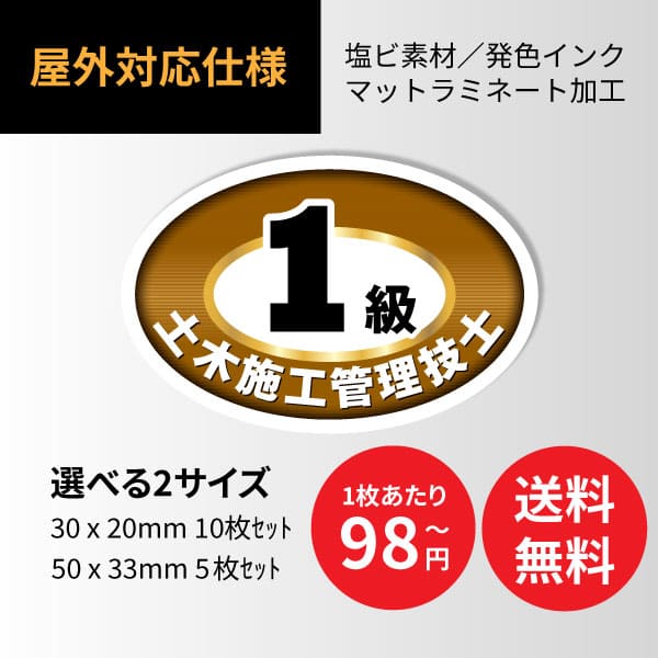 [資格ステッカー 1級土木施工管理技士] 塩ビ+表面マットラミ加工 1シート | ヘルメット・ 工具など