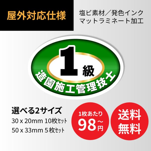 [資格ステッカー 1級造園施工管理技士] 塩ビ+表面マットラミ加工 1シート | ヘルメット・ 工具など