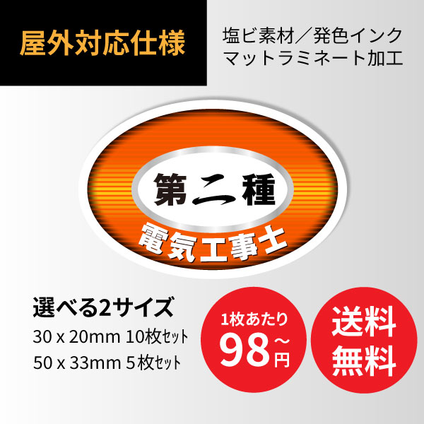 [資格ステッカー第二種 電気工事士] 塩ビ+表面マットラミ加工 1シート | ヘルメット・ 工具など